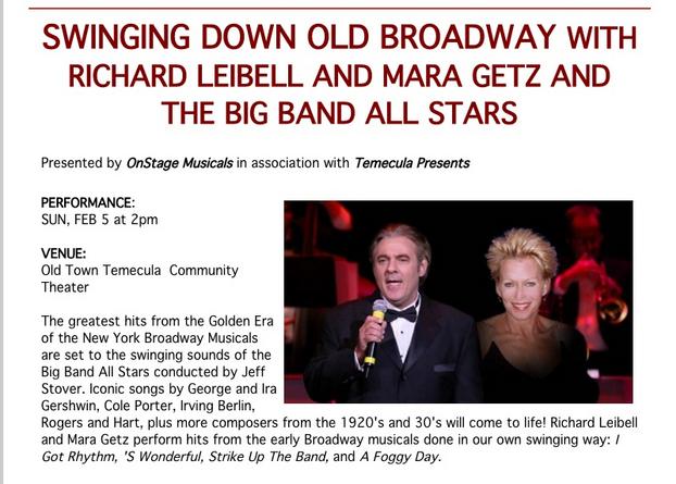 Mara Getz and Richard Leibell in "Swinging Down Old Broadway" with The All Star Big Band at The Old Town Temecula Theater, Temecula ,CA. at 2pm Feb.5,2017.